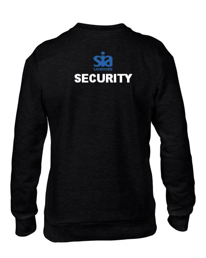 Left breast: Blue “SIA Licensed” and bold white “SECURITY”